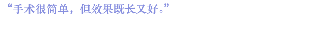 住在江陵,出差时顺便找医院咨询,听到院长先生说有一定的程度调节射精后半信半疑,但没有副作用的一句话让我想“不能比现在差吗?”然后拿出勇气来做了手术。手术虽然很简单,效果既长又好,夫妻生活也好起来了。