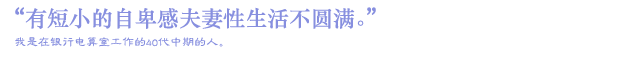 有固定的职业,还有漂亮的妻子但我的受难没完没了。为了不让妻子看到我的小阳具,只能在黑乎乎的空间里进行。这样夫妻性关系就自然地不圆满。