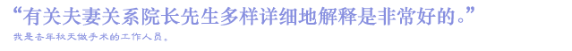 但是过了40岁妻子在床上渐渐变成积极性的所以产生了夫妻之间的问题。我想可能是我的小阳具的原因,正苦闷中在报纸上看到院长先生的专栏马上打电话预约了。