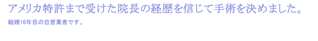 手術はほんとうに簡単でした。 ほんの20分くらいしかかからなかったし、活動するのに何の問題もなかったんです。そして效果はいいでした。