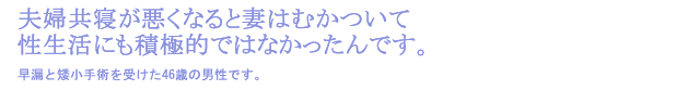 早漏症と夫婦生活全般にかけた?長の相談を受けて矮小手術まで一緒に受けることにしました。