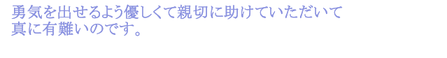 勇気を出すように助けてくれて?当にありがたいのです。 もちろん多くの病人を対する中に会得されたノウハウ(?)であるが…。