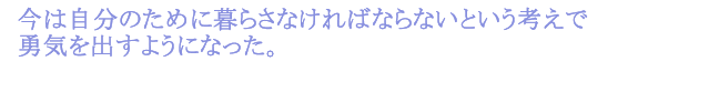 今は自分のために暮らさなければならないという考えで勇気を出すようになりました。